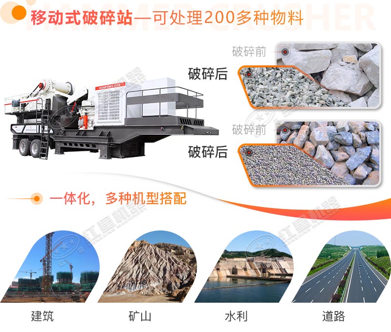移動式破碎站可破碎建筑垃圾、煤矸石、煤炭、河卵石、石英砂、花崗巖、玄武巖、鐵礦石、石灰石、石英石等,尤其是需要搬遷作業(yè)的物料加工、流動性石料處理,常用在建筑垃圾處理、砂石料場、礦山開采、煤礦開采、混凝土攪拌站、干粉砂漿、電廠脫硫等領(lǐng)域中。